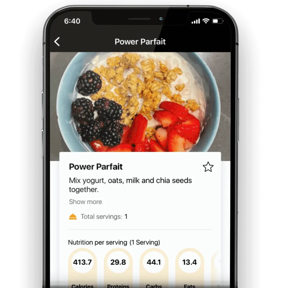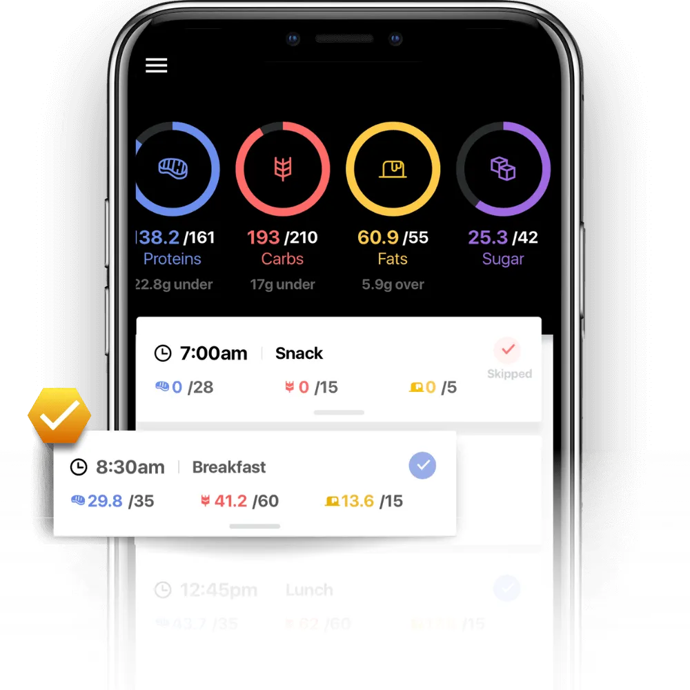 Simply answer a few questions about your lifestyle and health goals to get a nutrition plan that you can view and track from your phone.