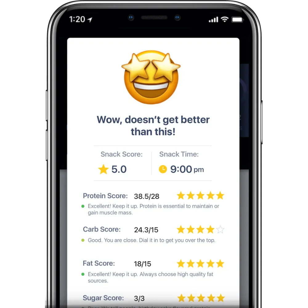 Receive a 1 to 5 star rating based on food quality and accuracy to your meal plan